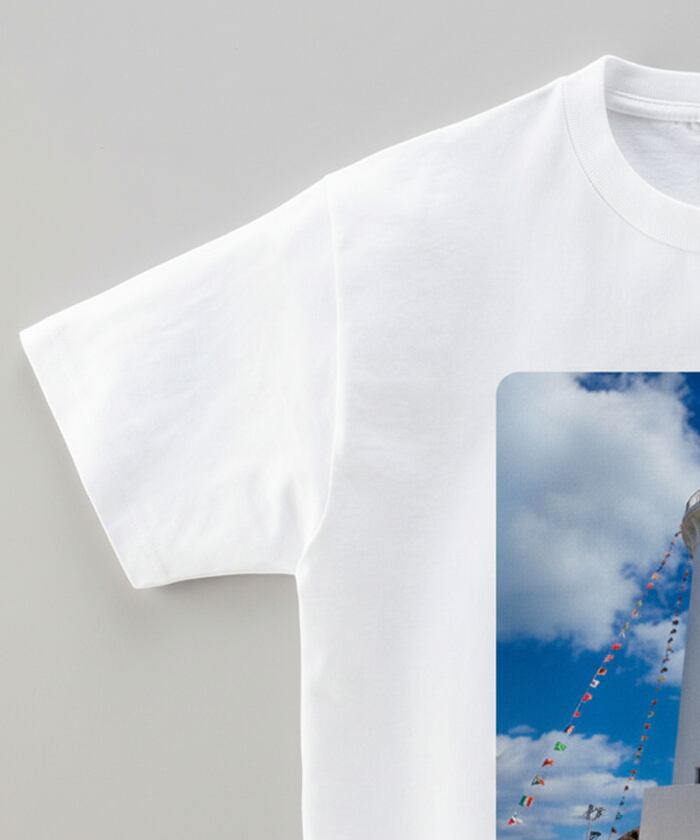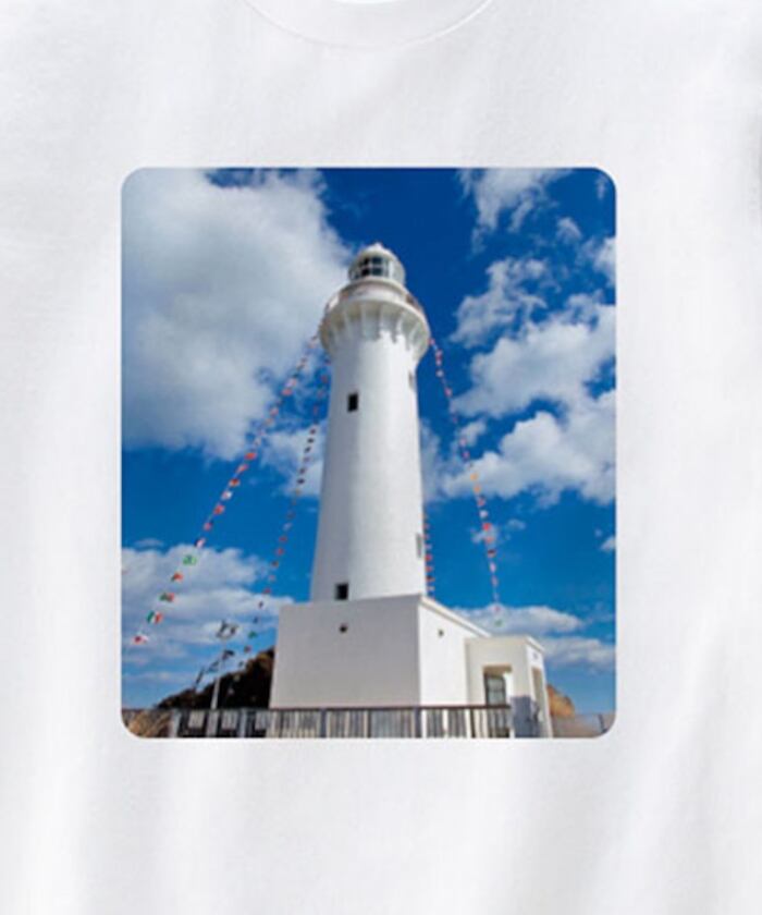 白い灯台と青空のコントラストが美しい、いわきを感じるフォトTシャツです。