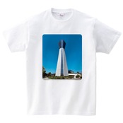 真っ白なボディに映えるタワーの姿は、どこか懐かしく、地元の風景を思い出させてくれます。男女問わず着こなしやすいシンプルなデザインで、日常使いにもぴったり。